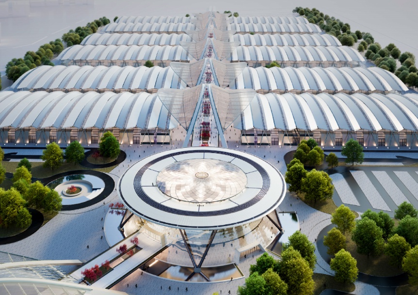 展馆一期由德国GMP建筑师事务所设计,主要包括14个标准展厅,2个多功能展厅和1个登录厅,占地面积约为938亩,总建筑面积31.31万平方米,室内展览面积12.8万平方米,室外展览面积10万平方米,2023年10月开馆试运营。2025年5月将全部建成投用。