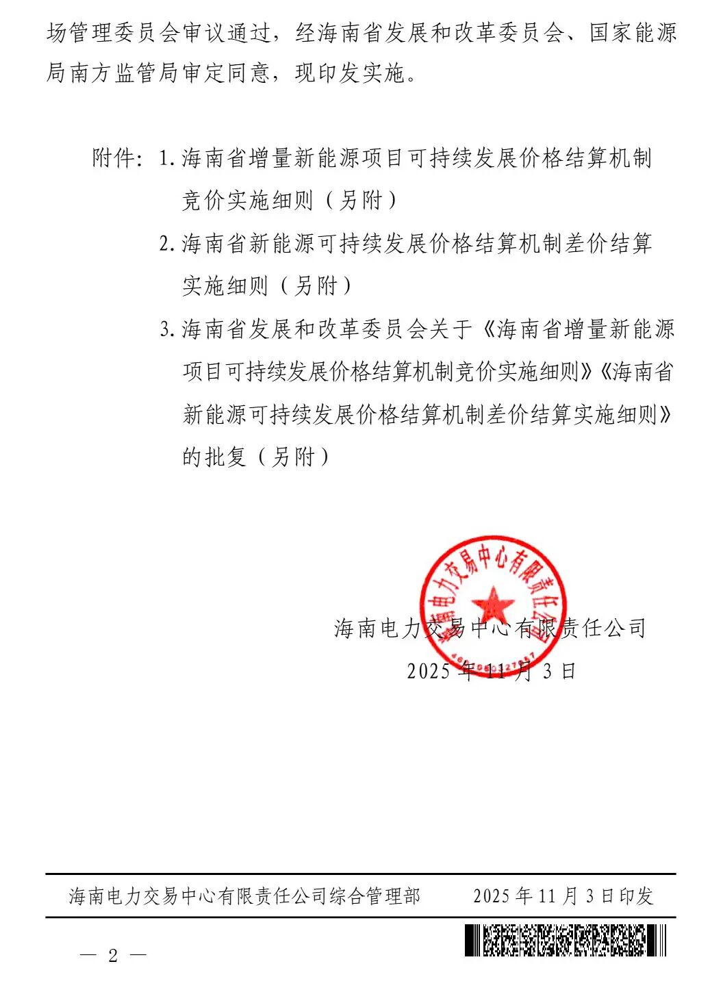 11月3日,海南电力交易中心印发海南省新能源上网电价市场化改革配套细则的通知,实施细则提到,适用于2025年6月1日及以后投产的且未纳入机制执行范围的新能源项目(风电、太阳能发电项目,下同)。