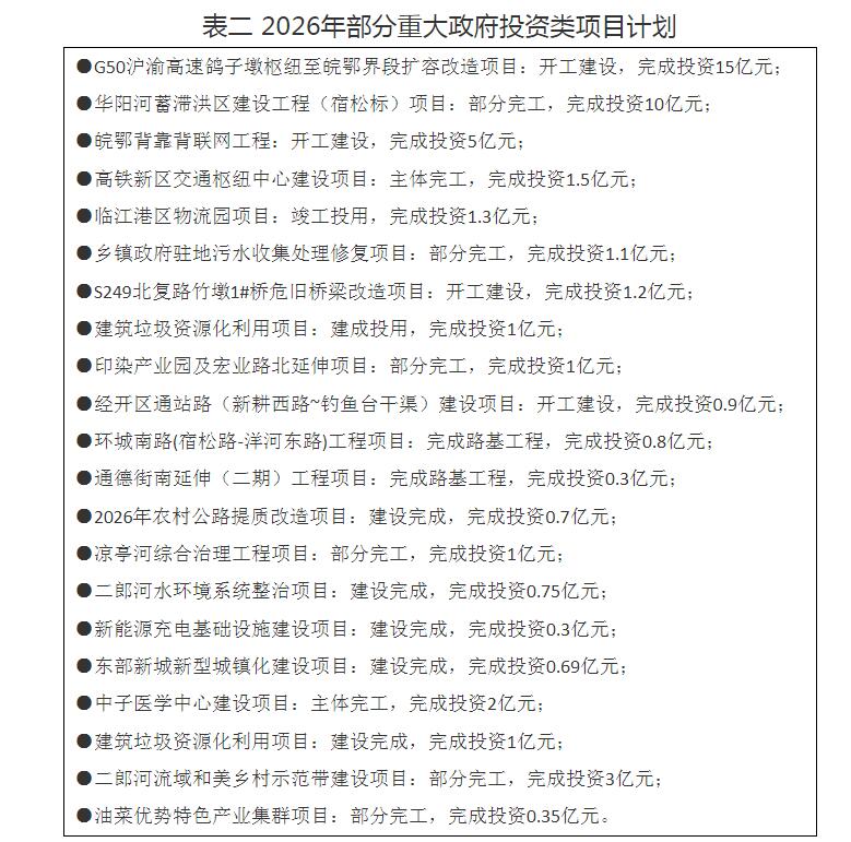 近日,安徽省宿松县发改委发布关于宿松县2025年国民经济和社会发展 计划执行情况与2026年计划草案的报告。