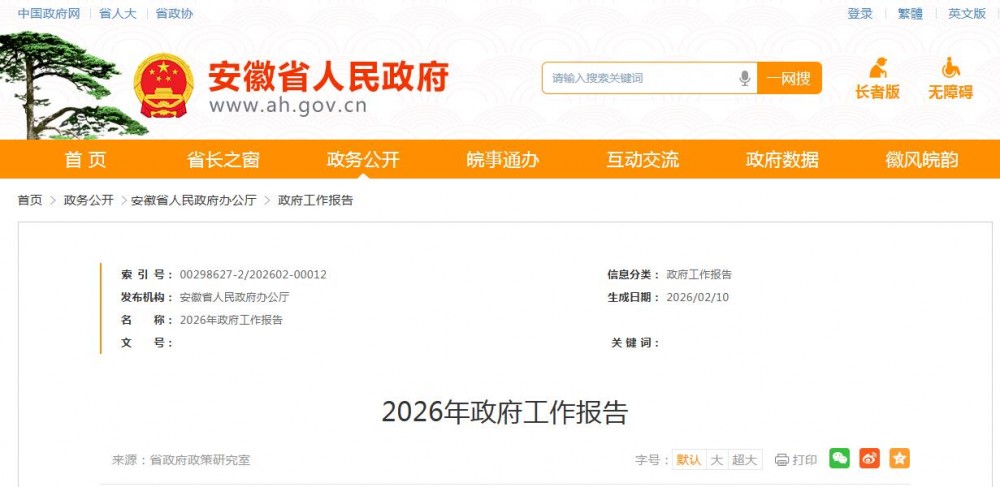 2026年是中国共产党成立105周年,是“十五五”开局之年。做好今年政府工作,要坚持以习近平新时代中国特色社会主义思想为指导,深入贯彻党的二十大和二十届历次全会精神,认真落实四中全会和中央经济工作会议精神,全面落实习近平总书记考察安徽重要讲话精神,深刻领悟“两个确立”的决定性意义,坚决做到“两个维护”,按照省委十一届十次、十一次全会和省委经济工作会议部署要求,完整准确全面贯彻新发展理念,深度融入新发展格局,着力推动高质量发展,坚持稳中求进工作总基调,锚定“三地一区”实现新突破和取得“三个新的更大进展”目标,落实更好统筹国内经济工作和国际经贸斗争、更好统筹发展和安全的要求,落实更加积极有为的宏观政策,增强政策前瞻性针对性协同性,持续扩大内需、优化供给,做优增量、盘活存量,因地制宜发展新质生产力,深度参与全国统一大市场建设,持续防范化解重点领域风险,着力稳就业、稳企业、稳市场、稳预期,推动经济实现质的有效提升和量的合理增长,保持社会和谐稳定,实现“十五五”良好开局。